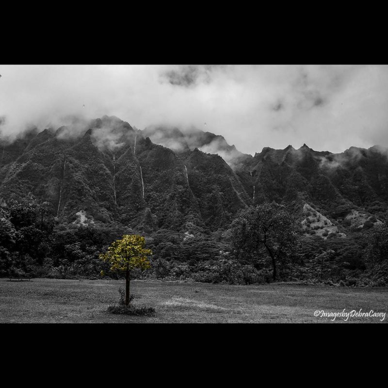 Ho'omaluhia tree w/ waterfalls